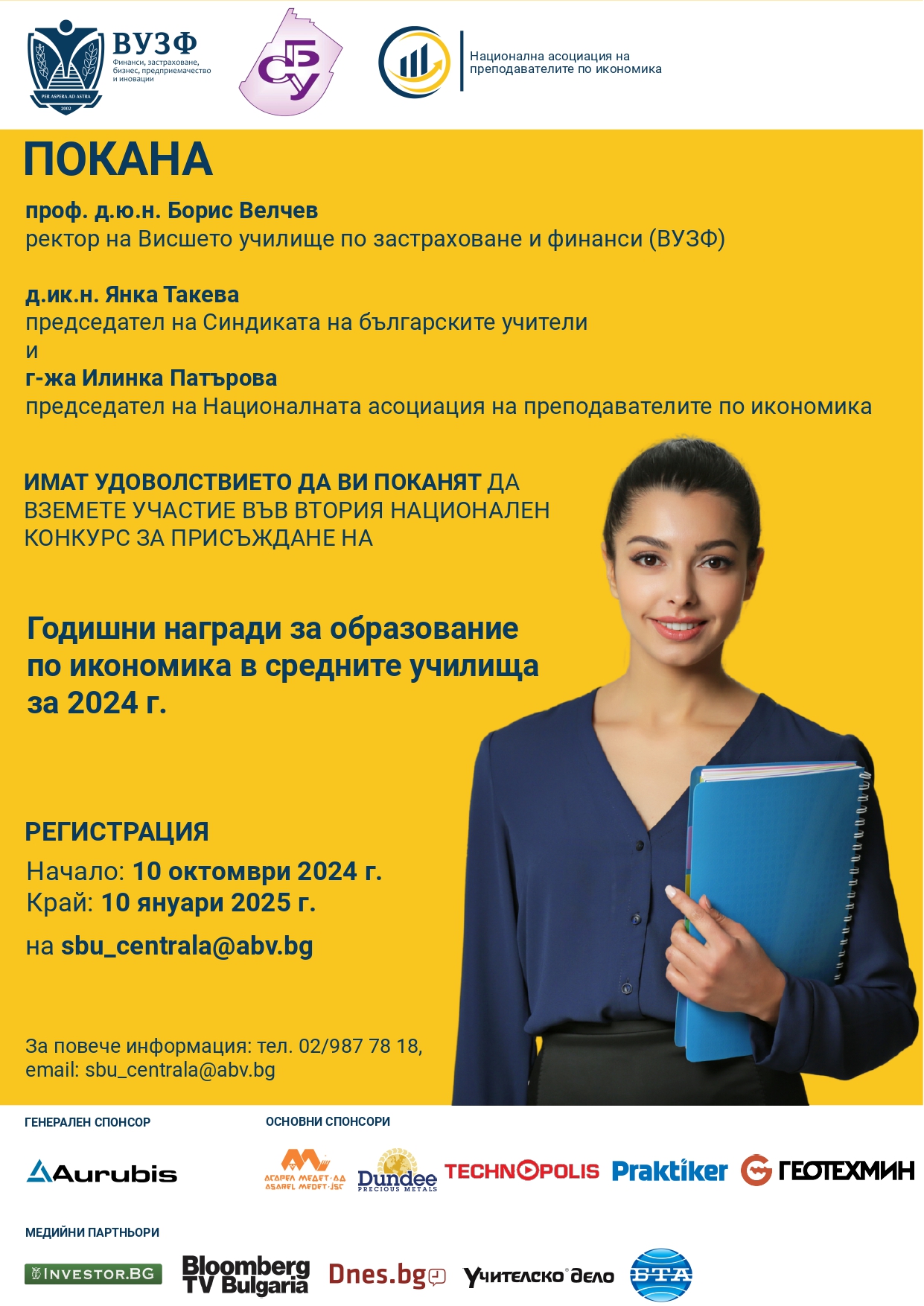 Синдикатът на българските учители и ВУЗФ стартират втория национален конкурс за Годишните награди за образование по икономика в средните училища за 2024 г.